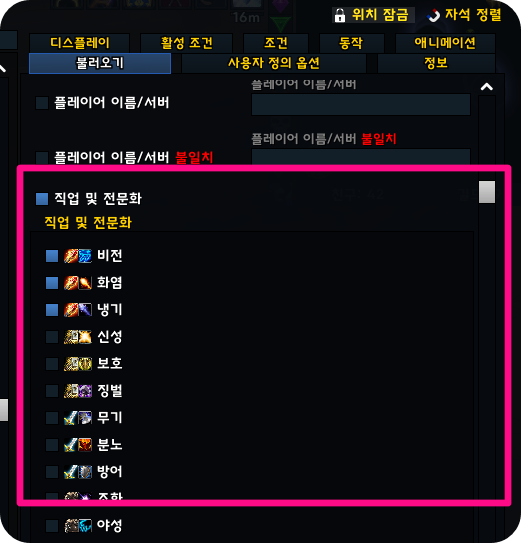 2. 불러오기 > 직업 및 전문화에서 적용할 클래스 전문화로 변경