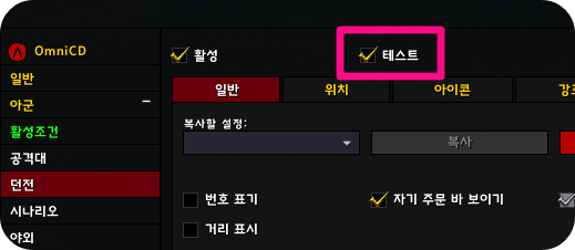 1. 채팅창에 /oc 입력하고 [던전] > 테스트 체크합니다.