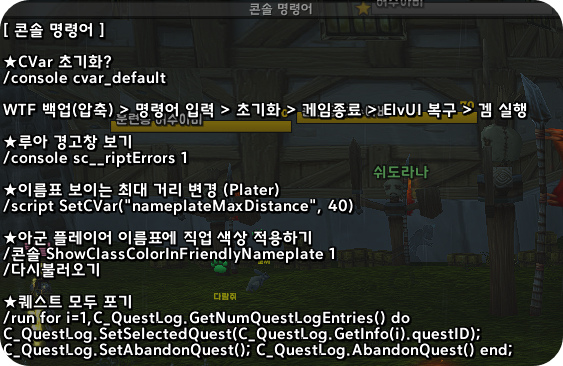 보통 60렙이되서 용군단에 진입하거나, 오랜만에 복귀했을 때 사용하는 명령어입니다.