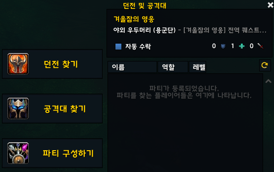 필드보스 파티가 없을 때 직접 만들면 자동수락 버튼이 없는 경우가 있습니다.
