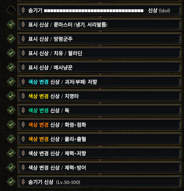 - 결빙 필터는 결빙 룬마스터용 필터입니다. 필요없는 경우 체크 해제하세요.