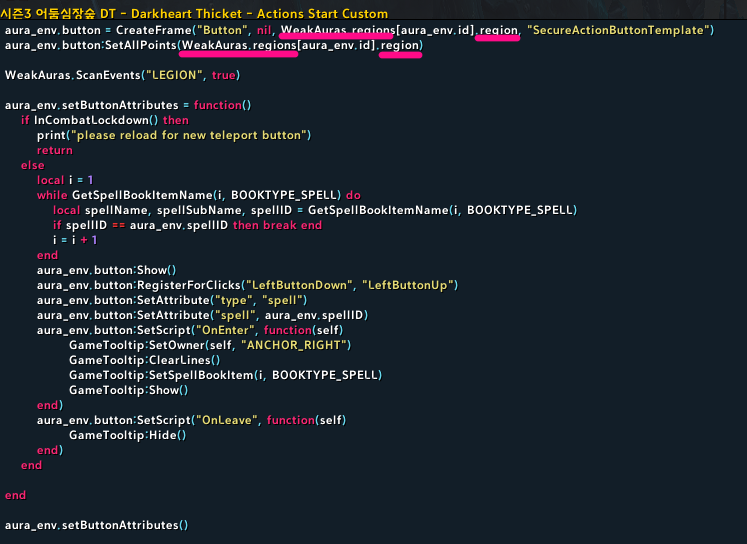 코드에서 WeakAuras.regions[aura_env.id].region 를 찾아서