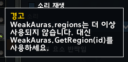 위크오라를 실행할 때 간혹 WeakAuras.regions는 더 이상 사용되지 않습니다