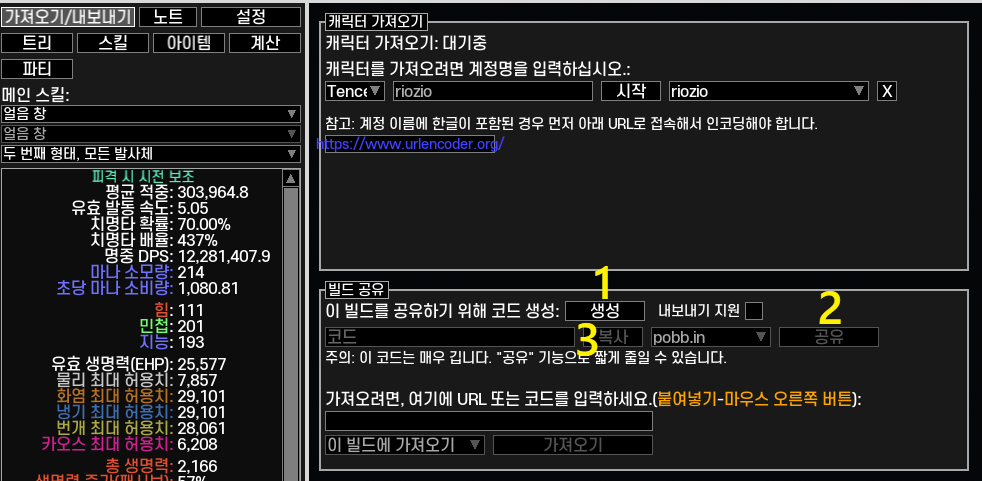 내가 사용 중인 POB 빌드를 다른 사람과 공유하고 싶다면
