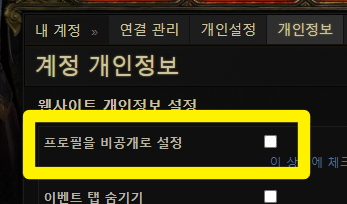 Pob로 내 캐릭터를 가져오려면 프로필을 공개 설정해야 한다.