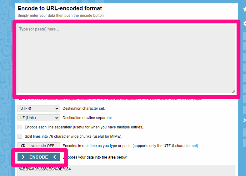 아래 ENCODE 버튼해서 나오는 값을 위 계정명 란에 붙여넣으면 될 것 같네요.