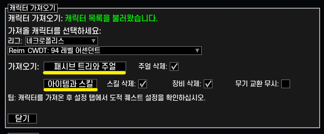 내 캐릭터를 Pob로 불러오는 방법입니다.