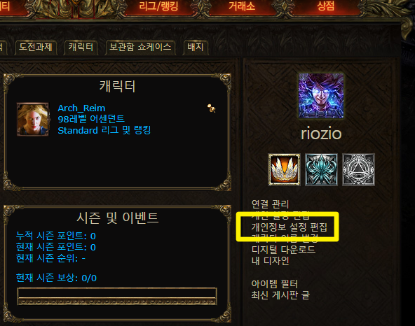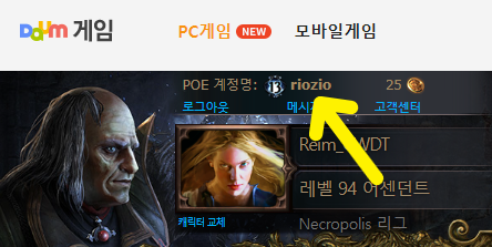 1. 다음 POE 홈페이지(링크)에서 계정명을 클릭