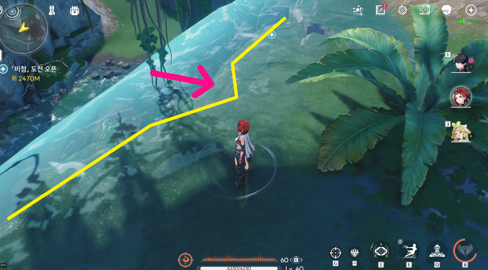폭포쪽 미리가서 지형을 확인해보면 패인곳이 있는데 저 곳으로 유도해서 획득했습니다.