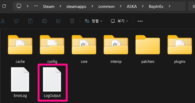 게임을 한번 실행하면 BepInEx 폴더 안에 LogOutput.log 파일이 생깁니다.