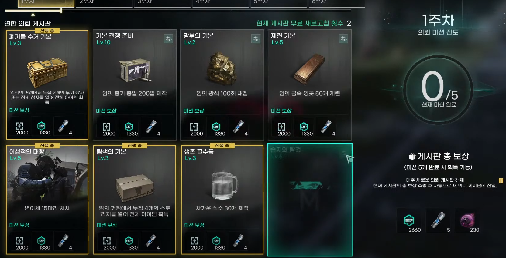 확인 버튼을 누르면 모든 과정이 끝나며, 별도의 가이드가 없기 때문에 L키를 눌러 미션을 진행하며 레벨링하면 됩니다.