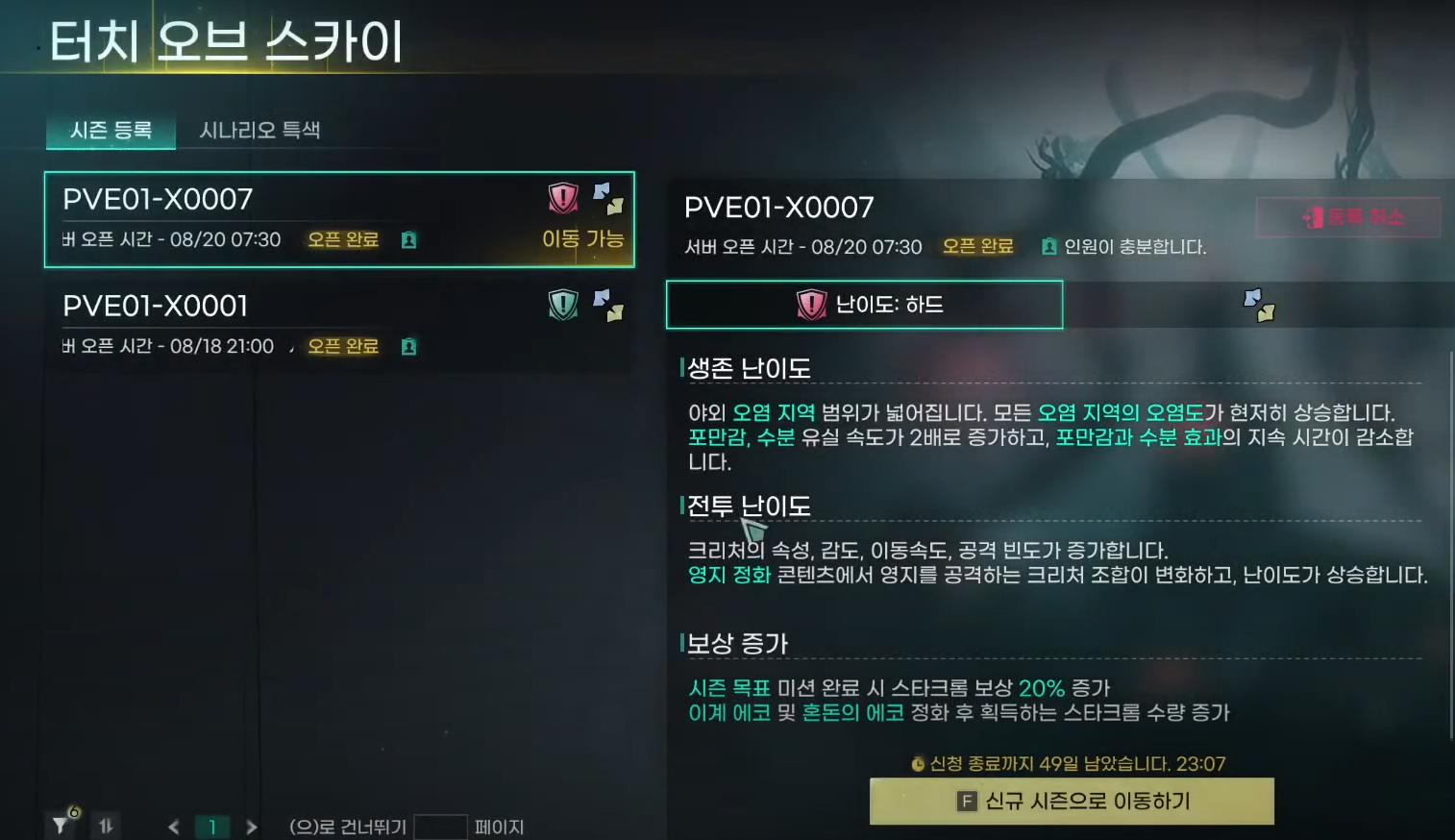 내가 가고 싶은 난이도의 서버를 예약하고 해당하는 시간 이후에 버튼을 눌러 이동 가능합니다.