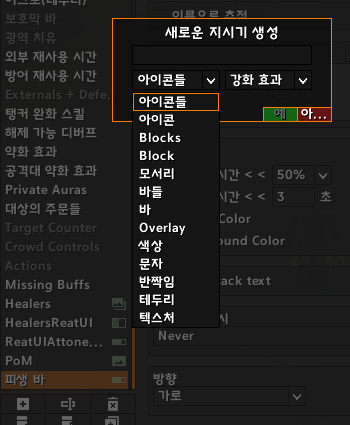 이때 아이콘이나 바, 반짝임 등으로 버프, 디버프를 커스텀해서 표시할 수 있습니다.