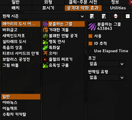 버프, 디버프에 따라 어떻게 보이게 할지 주로 설정하는 곳입니다.