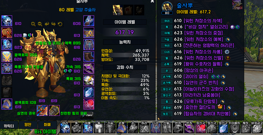캐릭터의 Bis 아이템을 캐릭터 창 밑에 보여주도록 만든 위크오라에요.