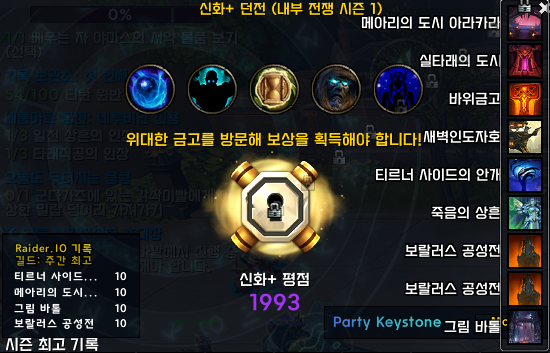 쐐기 10단 클리어하면 획득하는 포탈을 클릭가능한 아이콘으로 보여주는 위크오라입니다.