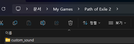 내문서의 My Games\Path of Exile 2 경로안에 custom_sound 폴더가 보여야 합니다