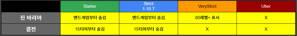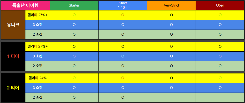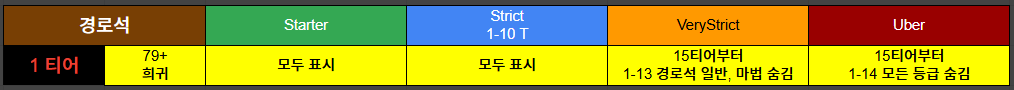 전체적으로 아래 컬러에 따라 티어가 구분되어 있습니다.