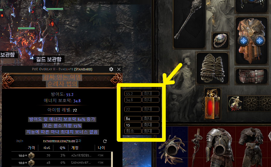 PoE 오버레이는 게임 중에 아이템에 마우스 올리고