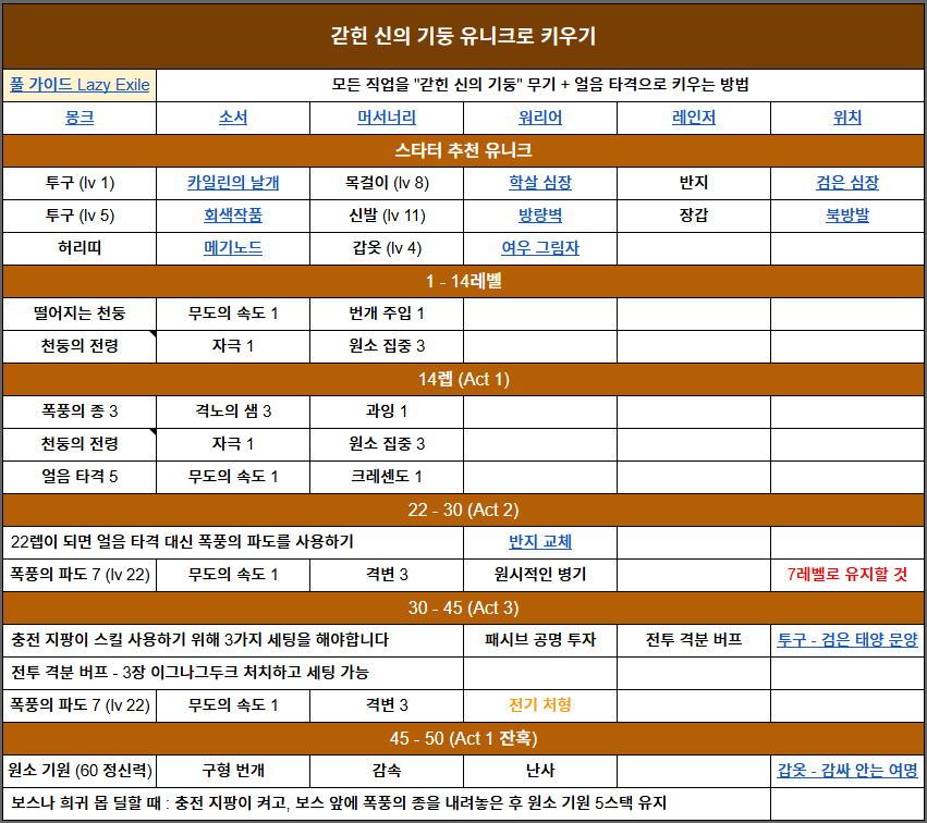 모든 클래스에 대해 스킬 트리 등 가이드가 자세히 작성되어 있기 때문에