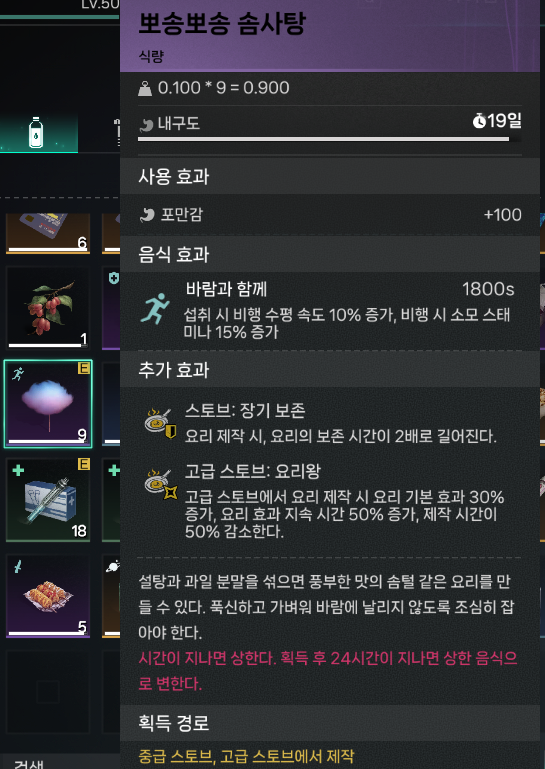 - 솜사탕, 중력 흡수제 : 결정런에 상자에서 제조법 획득 가능