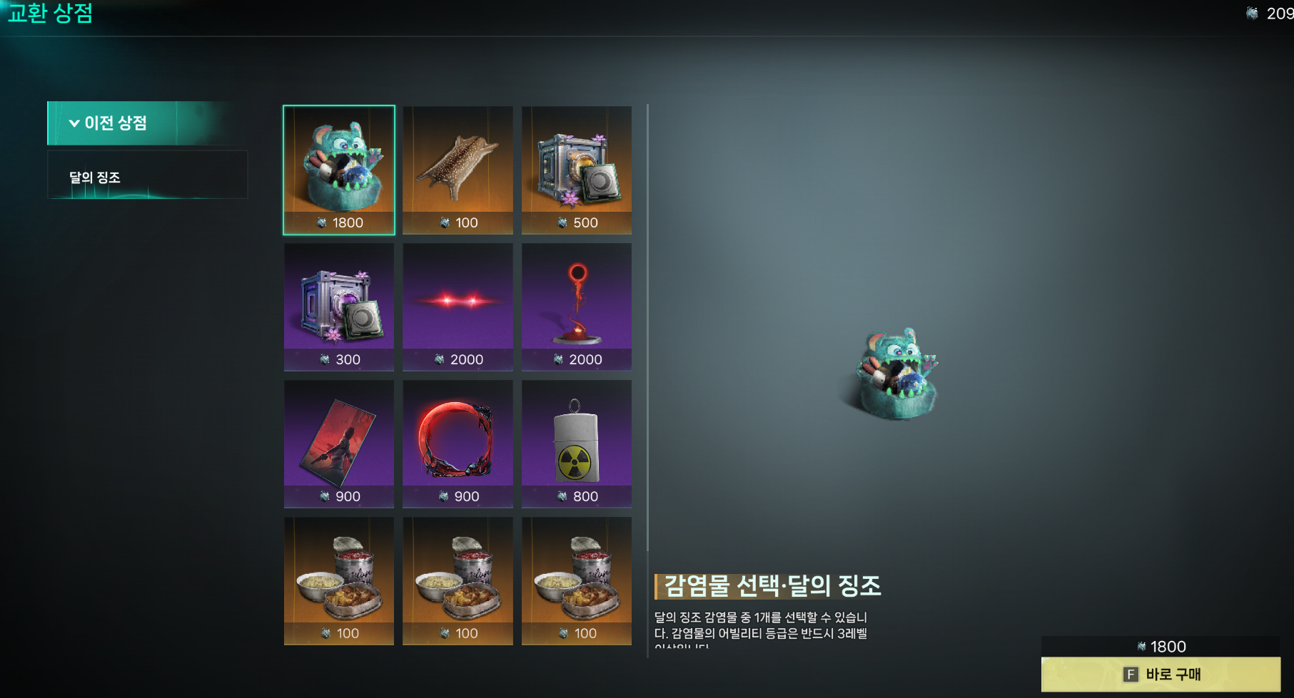 만약 감염물이 없다면 교환 상점에서 중력결정 1800개로 감염물을 구입할 수 있습니다.