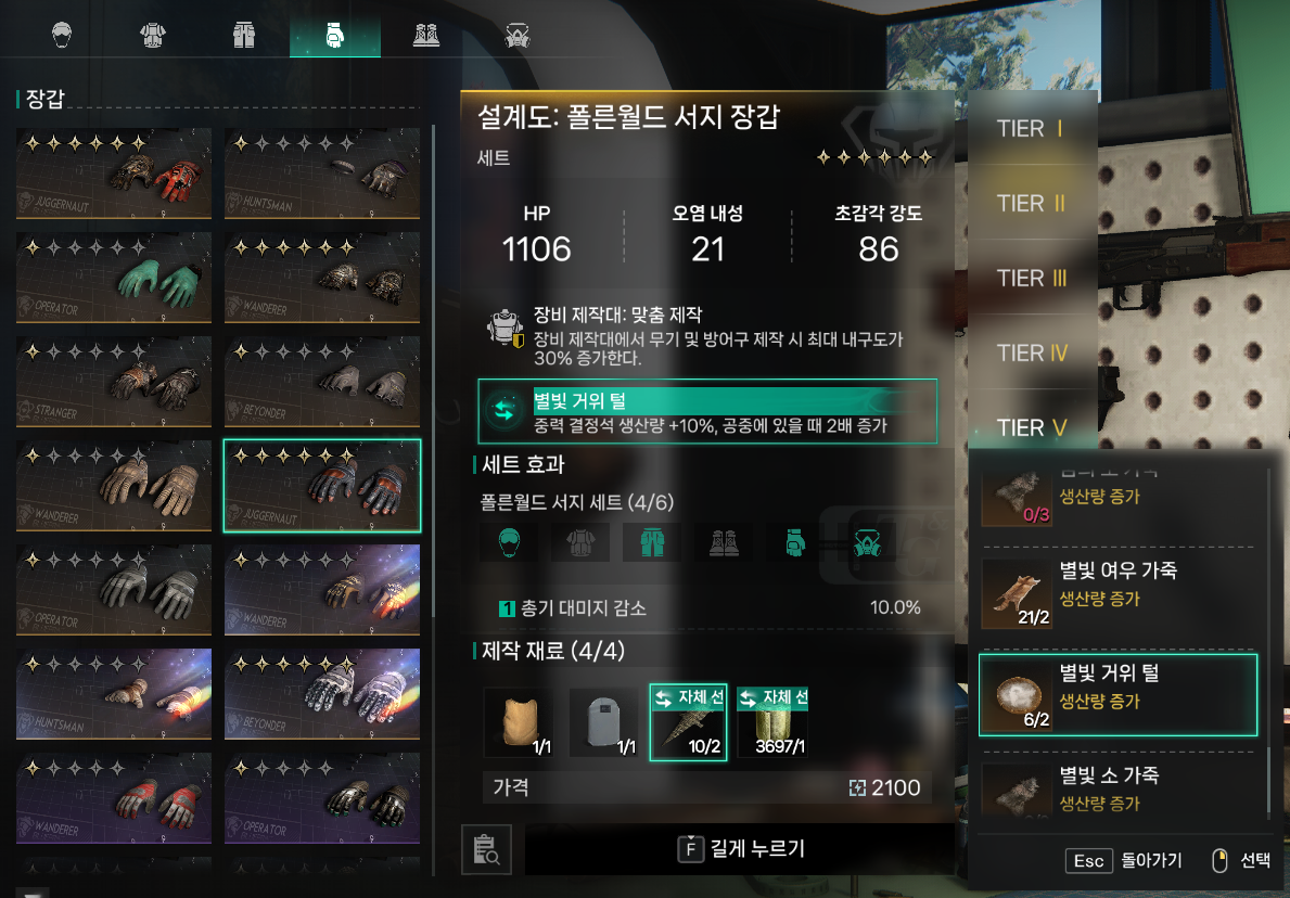 '별빛 OO' 종류 아무 가죽이나 넣고 제작하면 중력 결정 획득량 20% 증가