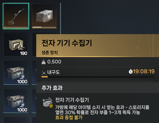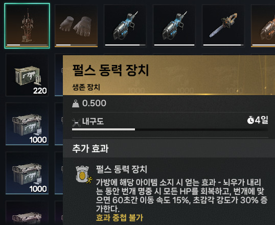 원스휴먼을 플레이하면서 항상 제작하거나 구입하는 기간제 아이템 리스트입니다.
