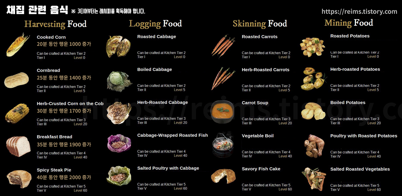 📌 채집 행운을 증가시켜주는 음식들